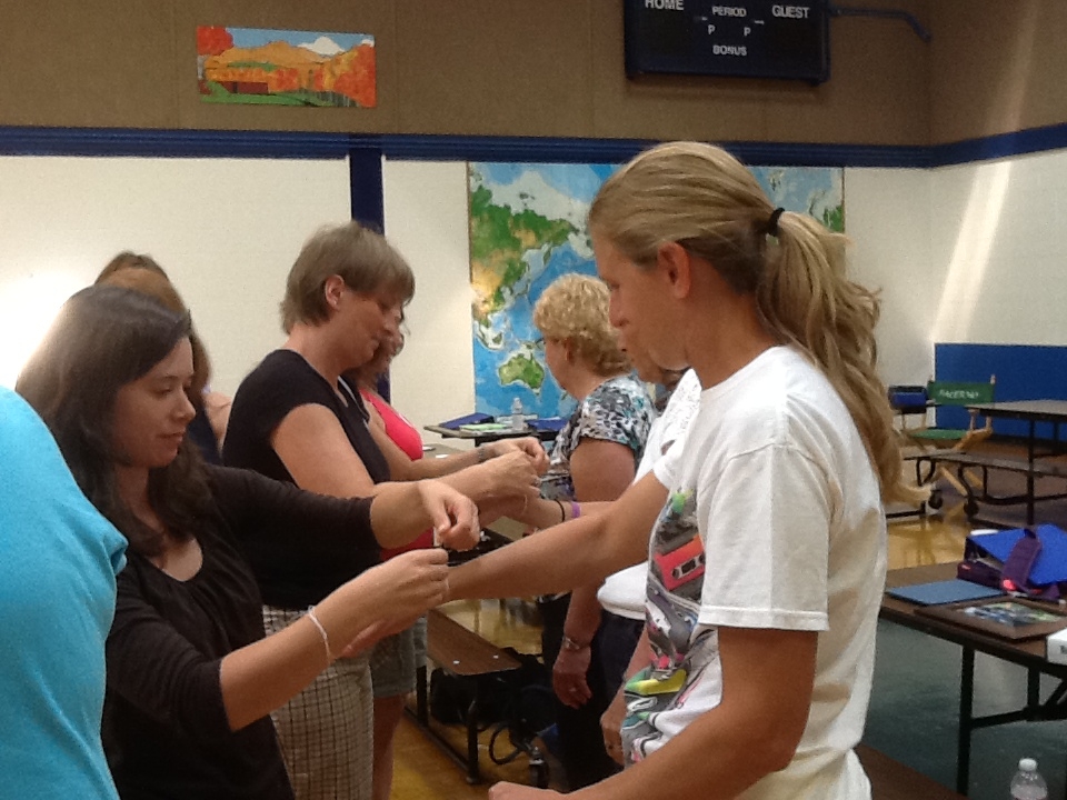 inservice after Melissa Sargent-Minor shared a traditional Thai string-tying ceremony called Bai Sri Su Kwan with faculty and staff. Melissa served as a FWSU Visiting Scholar this summer in Thailand sponsored by the UVM Asian Studies Program. The program enhances teachers’ knowledge of Asian cultures and helps bring that information to our schools and communities.