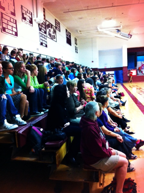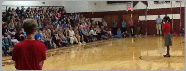 The event, developed by Global English teachers Sara Villenueve and Will Brooks along with Principal Mike Clark, addressed the following Enduring Understanding: Change is possible through Question, Persistence and Advocacy. The assembly was a continuation of the work begun last year by the Multimedia and Society class, who first discovered the Kony 2012 documentary and initiated a project to promote awareness to the BFA Fairfax student body.
