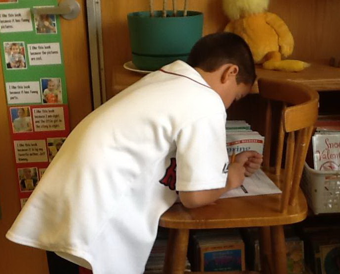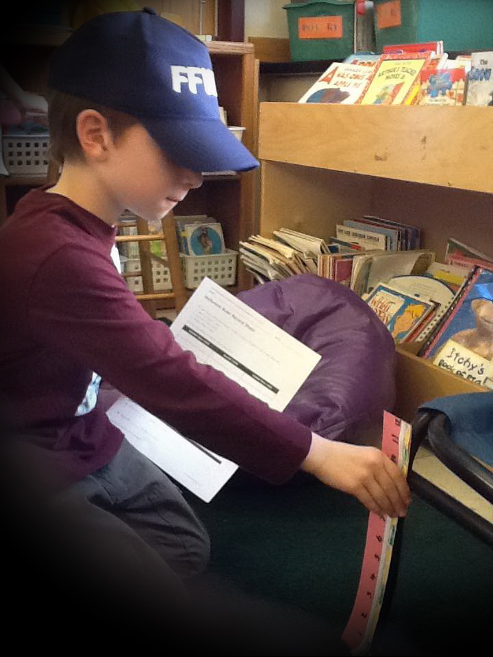Last week, children in Katie Haddock’s classroom needed to understand that 12 inches is equal to 1 foot – and that the standard measure of 1 foot may not be the same length as their own physical foot. Students learned why inchworms are called “inchworms” (they are equal to 1 inch) and then used this as a referent to create their own “inchworm” rulers with cardboard, paper, and glue. Once created and numbered, it became clear that there were 12 equal segments in their ruler, that they were “inches” (like the inchworm), and that they created a standard measure that everyone could used and then compare. Following a session with scissors, colored pencils, and glue, students scattered about the classroom measuring, charting, and comparing the length of objects using their inchworm rulers. The talk among students was about what made sense, which object was longer, and how to measure accurately.
