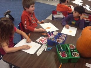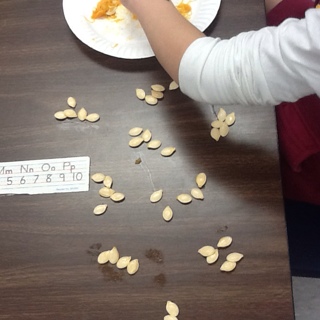 After carving, these young scientists became mathematicians They were required to estimate, sort, count and total. Skip counting was completed in 2’s, 5,s, and 10’s to figure out the total sum. They actually found 656 seeds in a pumpkin! You can see and hear individual estimates by clicking on the link above.
