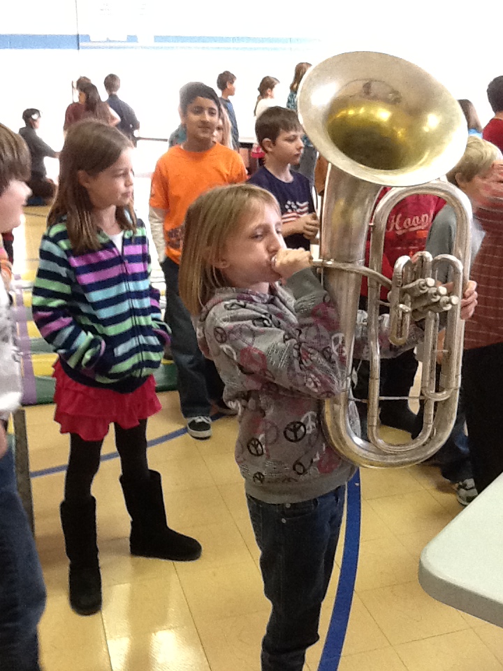 “Zookeeper”, Rebecca Kopycinski, brought a variety of orchestral instruments to the school and allowed students to participate in a “hands-on” experience.