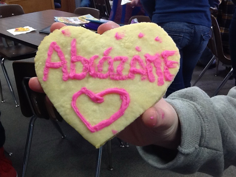 Spelling was emphasized and each cookie counted for a grade. On several cookies were the Spanish translations of “I love you – Te quiero”, “call me – me llaman” and “hug me – abrázame.” Students were now prepared to communicate with their Valentine in Spanish!