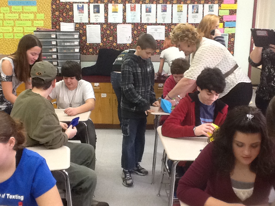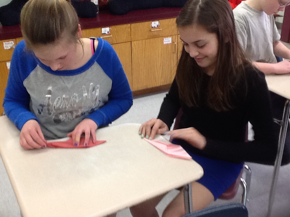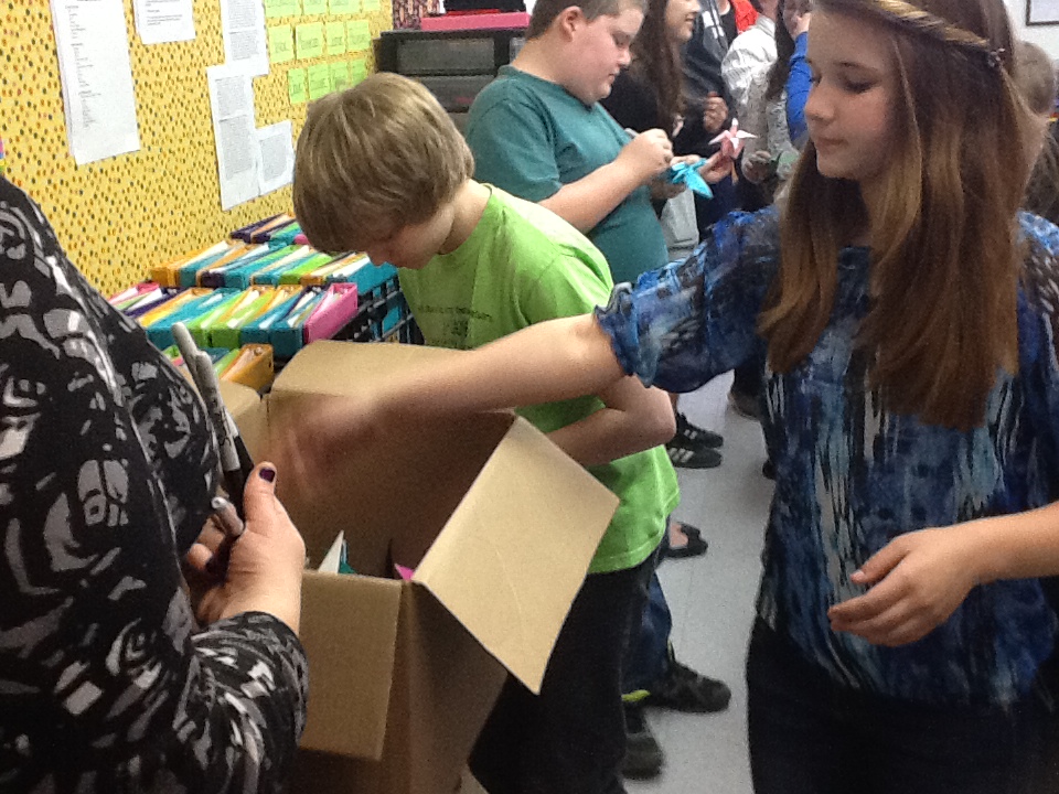 Fairfax 7th graders decided to fold and send paper cranes of their own this year. High school seniors Veronica Palermo and Sally Parizo helped Mrs. Wills’ and Mrs. Skerrett’s classes fold over 100 origami cranes that are being mailed to the Children’s Peace Monument in Peace Memorial Park in Hiroshima, Japan. There, they will be strung on wires and displayed for the more than one million tourists who visit the Hiroshima memorial each year.
