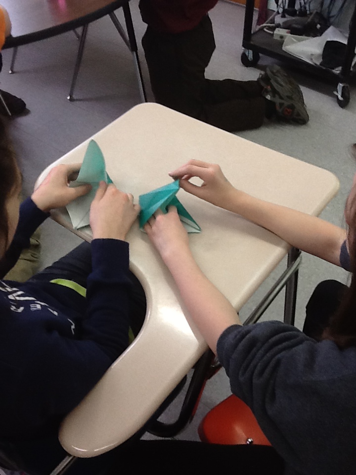 Students in the 7th grade at BFA Fairfax have been studying World War II, and recently read the book Hiroshima by Laurence Yep. This novella includes the story of the Japanese girl Sadako and her quest to make 1,000 origami paper cranes in an attempt to get her wish – a cure from her radiation sickness. The sickness caused by the atomic bomb dropped on Hiroshima by the United States at the end of World War II.