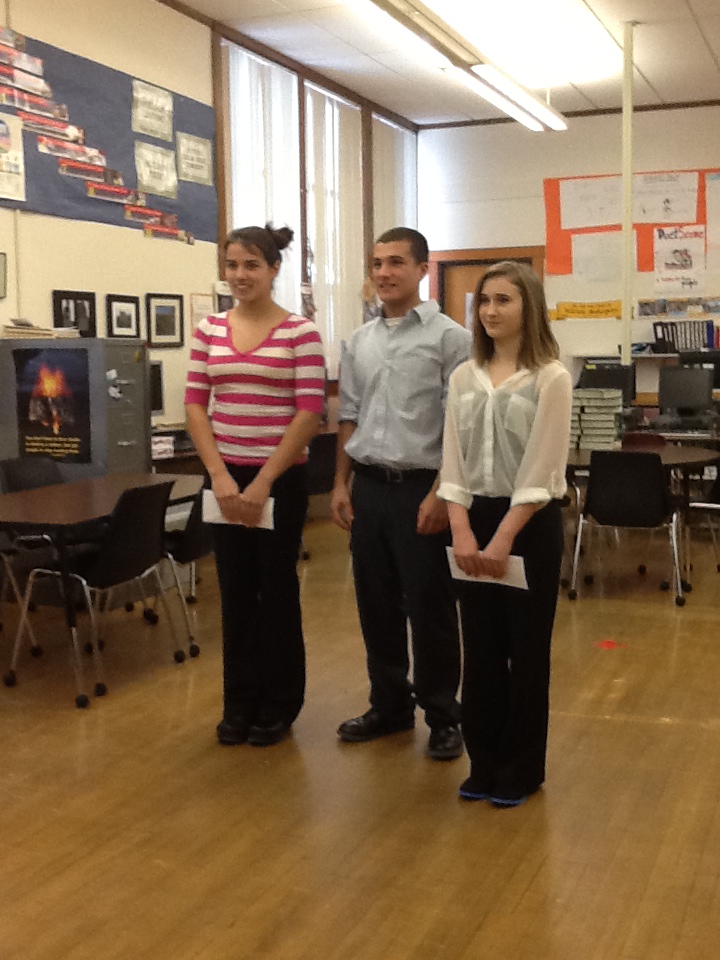 Our BFA statewide competitors, pictured from left to right: Sierra Benoit (1st), Matt LaRose (3rd), Mara Ormerod (2nd)