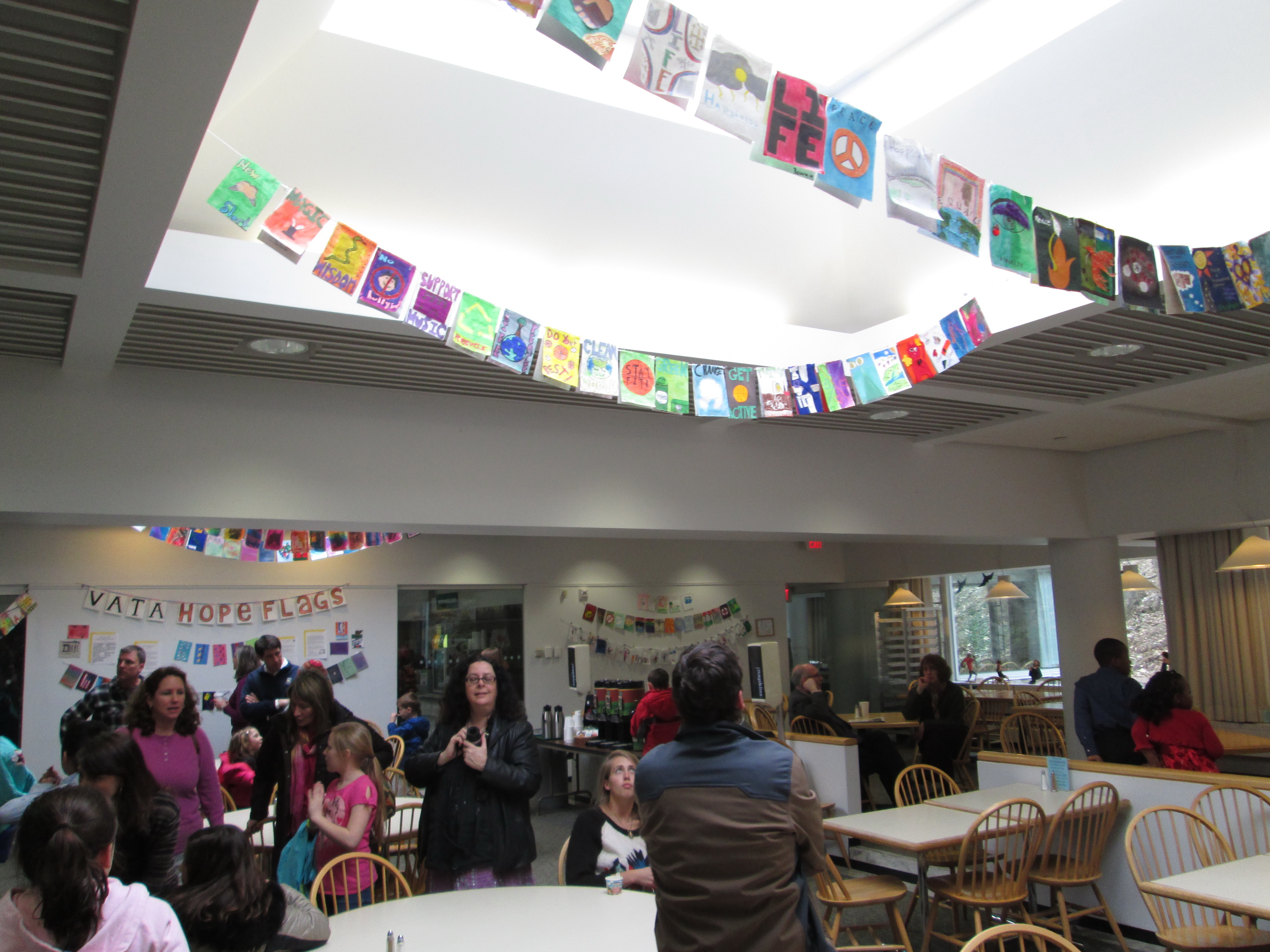 The theme for this year’s Youth Art Month was “Hope Flags.” Students created messages with images and words about their hopes for themselves, their communities, and the greater world around us. Many of the students created flags depicting what is important to them and what they hope for more of in the future. All of the artwork was mounted on 5”x7” felt flags.