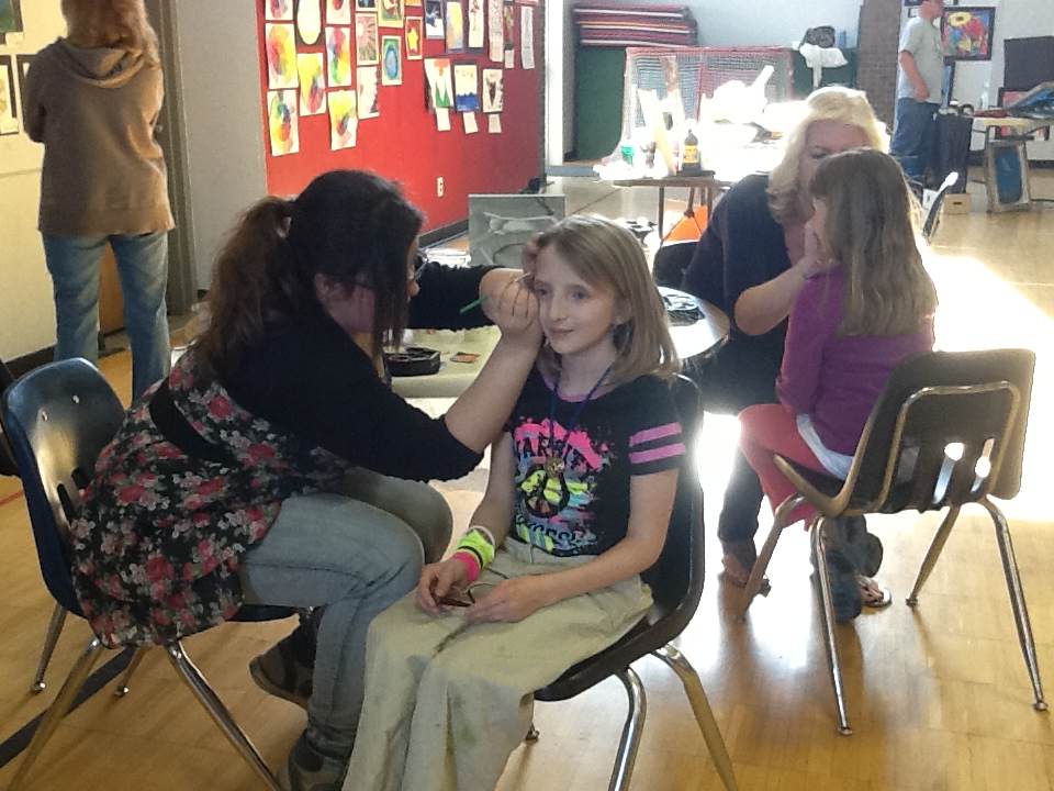 8th Grader Emily W painted children’s faces, along with local doll maker and dressmaker Kathy Weiland. Tayor W sat in at her display of dolls and baby dresses.