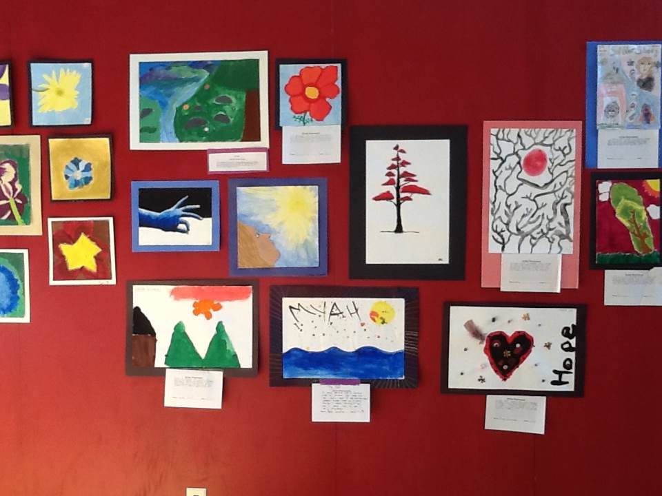 The middle school gym was overflowing with two and three-dimensional artwork by students from Kindergarten through 8th Grade. Numerous drawings, paintings, prints, sculpture, collage, ceramics, photography, and fabric arts were on display.