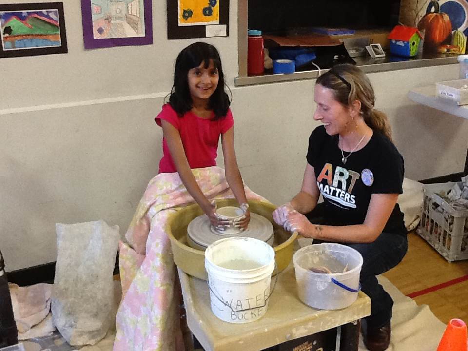 Local artist and designer Jon Tether and his wife Christine helped kids pull prints of some of Jon’s designs on a portable screen printer and artist/teacher Kristen Watson helped children of all ages throw a pot on the pottery wheel which was a first for many!