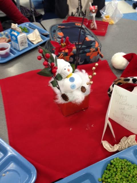These three 6th graders were the inspiration and effort behind the snowmen project for the finished holiday centerpieces. Student leadership was fully on display.