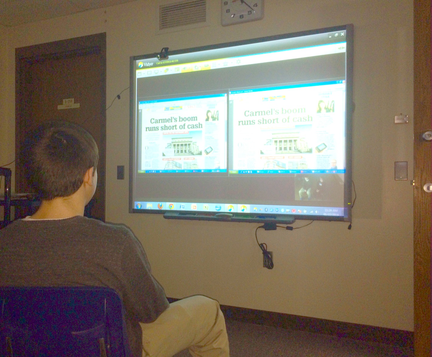 A small group of 8th grade students from GEMS had the opportunity to participate in conversation with two veteran reporters from the Indianapolis Star – Chris Sikich and Beth Winchell. Using video-conference software (ENA Live), the GEMS students along with other students from New York, discussed changes in journalism with the reporters.