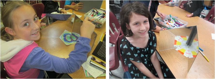 Students explored how the design changed as the number of reflections multiplied with the angle of the mirrors.