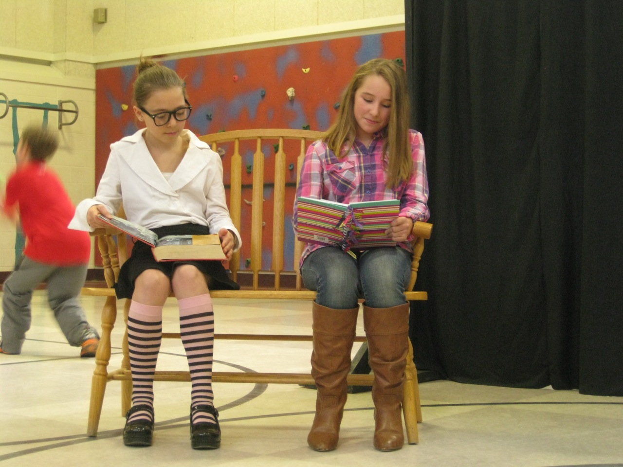Thirty-six 4th and 5th grade students met for 12 weeks this spring. Along with playing some dramatic games, they also spent much of their time in groups writing and rehearsing their own short ten-minute play. These short skits fit together into a bizarre sequence of events that happen on a single day at school at BFA. They performed two showings of their production, one for the elementary school and one for their parents, friends, and neighbors. The students put many hours in outside of drama club memorizing and rehearsing their parts. Their commitment to the show is commendable!