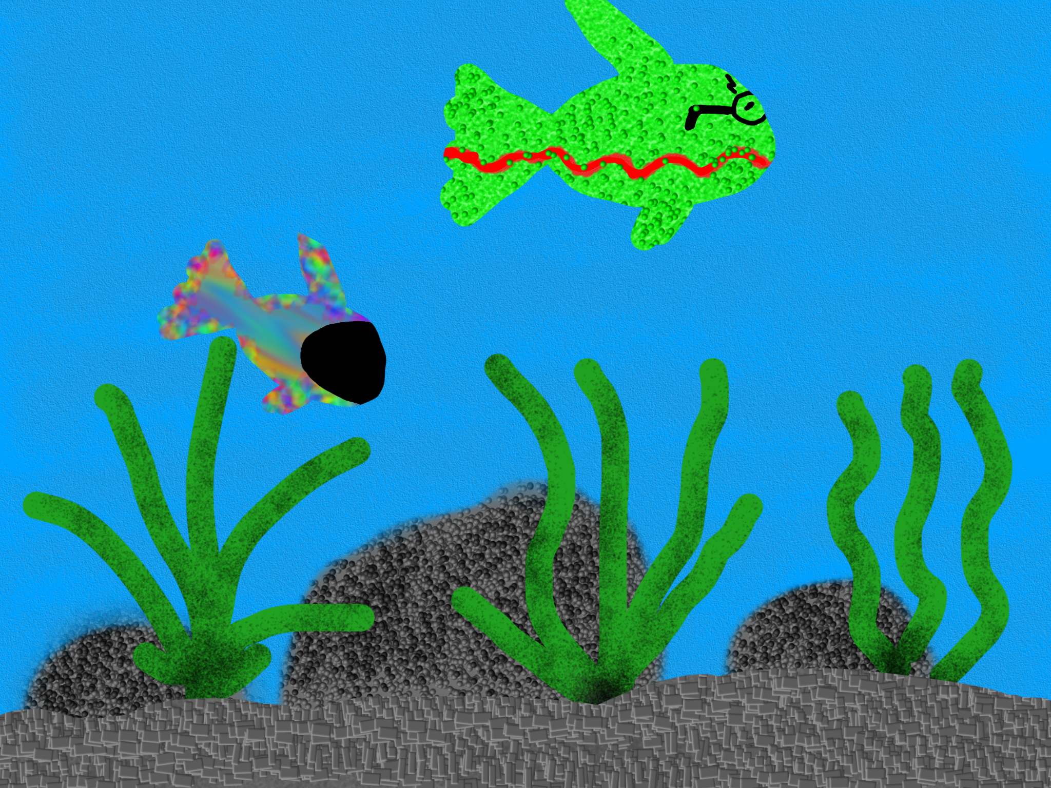 Students began working with the Art Studio app to create a multi-layered fish tank.