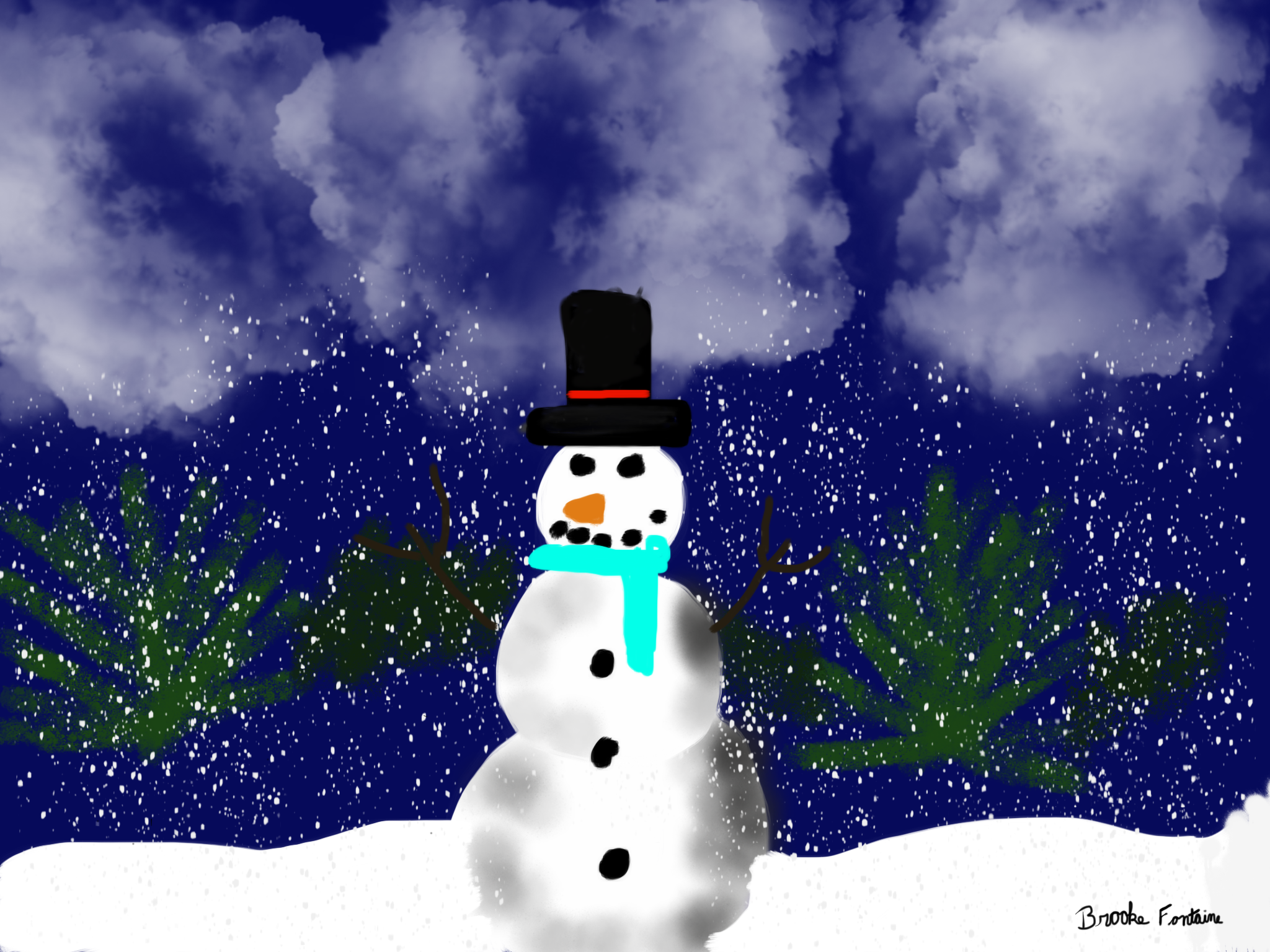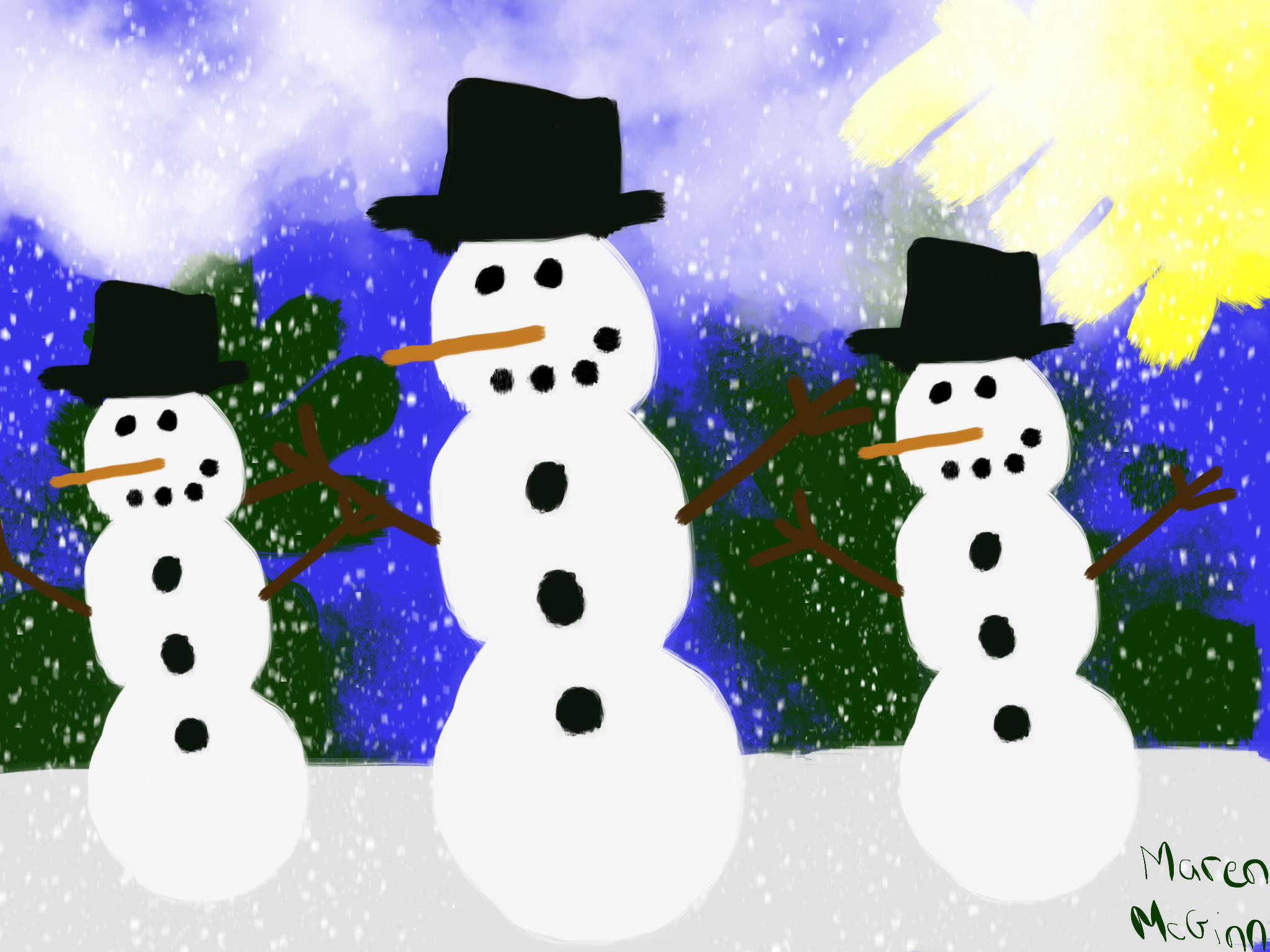 Next, the students celebrated the first snow day of the year by creating a snowman scene with the app Procreate. They were able to use layers in the app to work on each part of their painting.