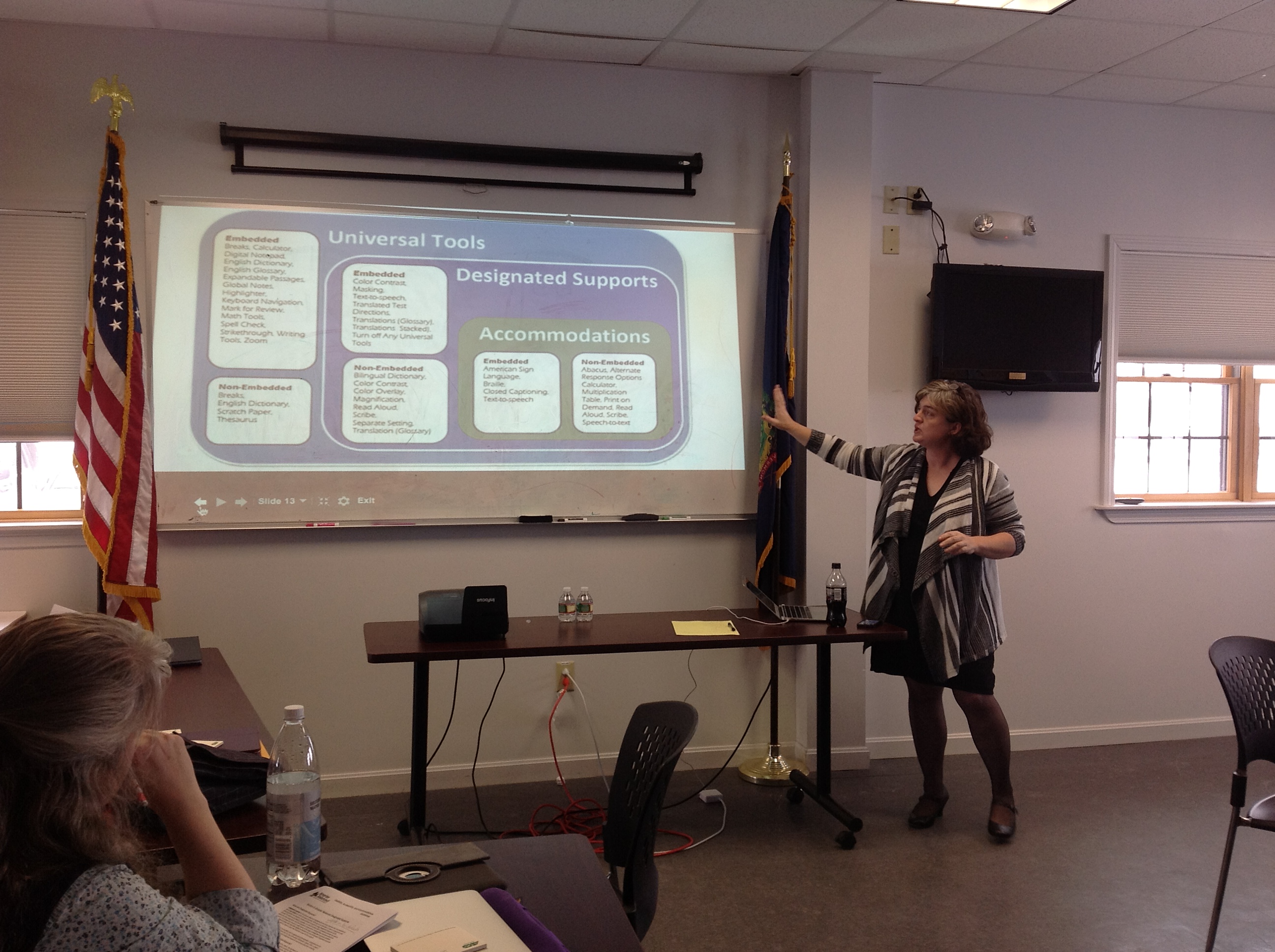Last week Special Educators in FWSU participated in mini-workshop to focus on the new and upcoming Smarter Balanced Assessment Consortium (SBAC) assessment. The SBAC assessment strives to provide every student with a positive and productive assessment experience. With a goal of generating results that are a fair and accurate estimate of each student’s achievement. In preparation for the assessment, Angelique Fairbrother (FWSU’s Digital Learning Specialist) guided a presentation and discussion on how to implement SBAC with accommodations for our students on IEPs or 504 plans.