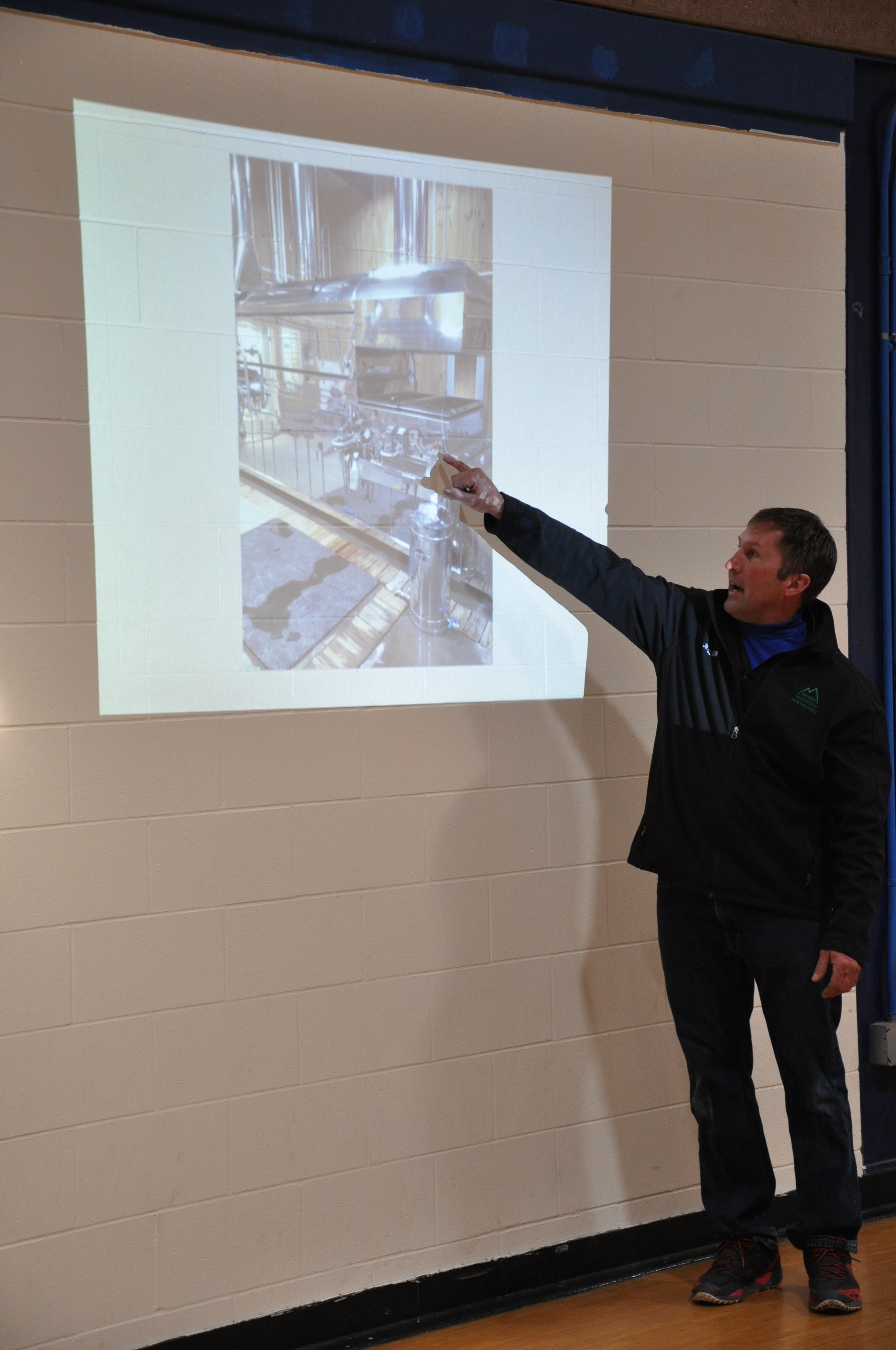 Sloan showed students photographs and video clips of the sugaring process and spoke about the essential academic skills of literacy and mathematics that are needed to run his operation. He also discussed the technology that allows his operation to be closely monitored for quality and functionality with minimal supervision. He stressed the importance of sustainability and environmentally sound practices, issues that some students have already looked closely at this year.