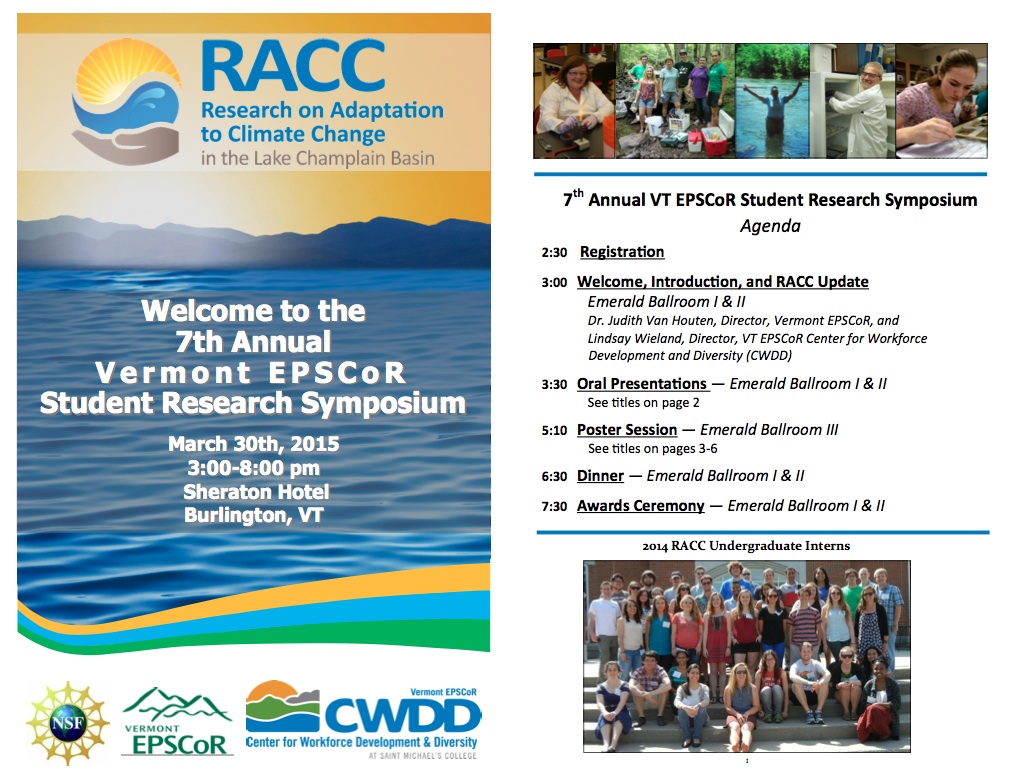 The Symposium featured oral and poster presentations highlighting scientific research on adaptation to climate change in the Lake Champlain basin conducted by individuals and teams from high schools, colleges and university’s across Vermont as well as Texas, Indiana and Puerto Rico.
