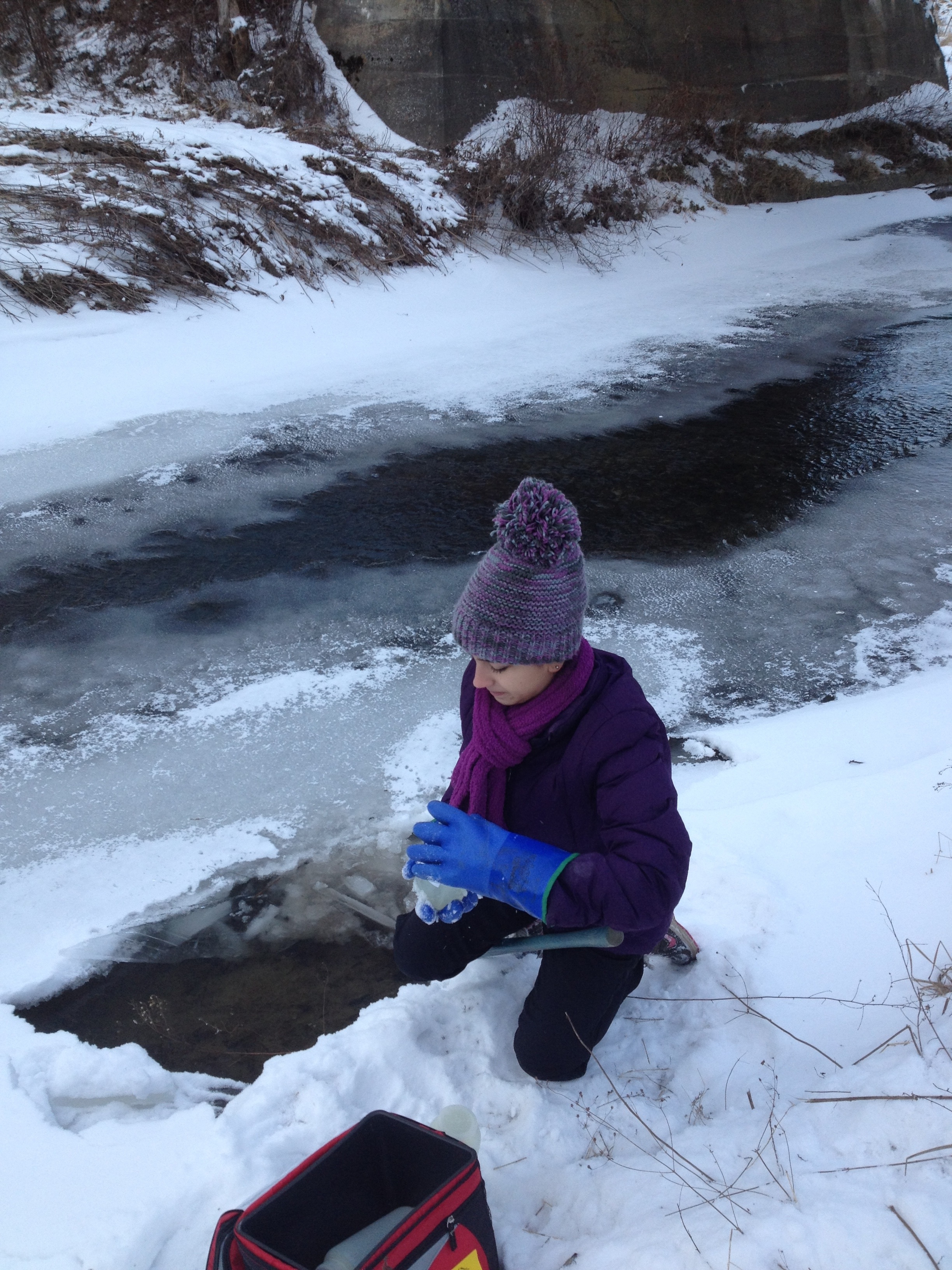 Sophie and Rebekah, with HS Science Teacher Tom Lane, in collaboration with the VT EPSCoR Center for Workforce Development and Diversity have been collecting water samples for analysis of phosphate, nitrogen and total suspended solids, measuring temperature, stage and flow rates as well as identifying macrobenthic populations at local creeks Mill Brook and Black Creek this past summer and winter.