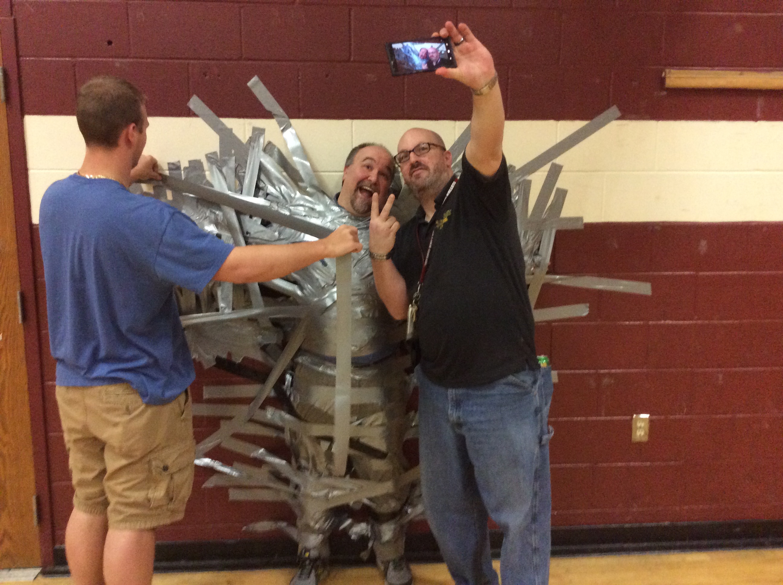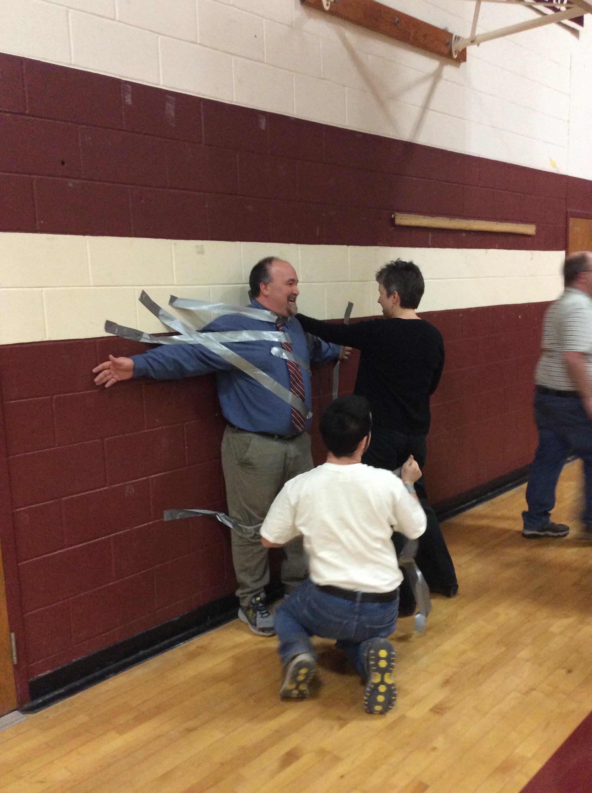 The fun started when students paid $1 for two feet of duct tape and then got to place their tape on Mr. Clark with a goal to keep him stuck to the wall. The NHS students shared they were very surprised with excitement for this fundraiser. “Not only did we exceed our goal of $100 but students were really enthusiastic about actually putting the tape on Mr. Clark.”