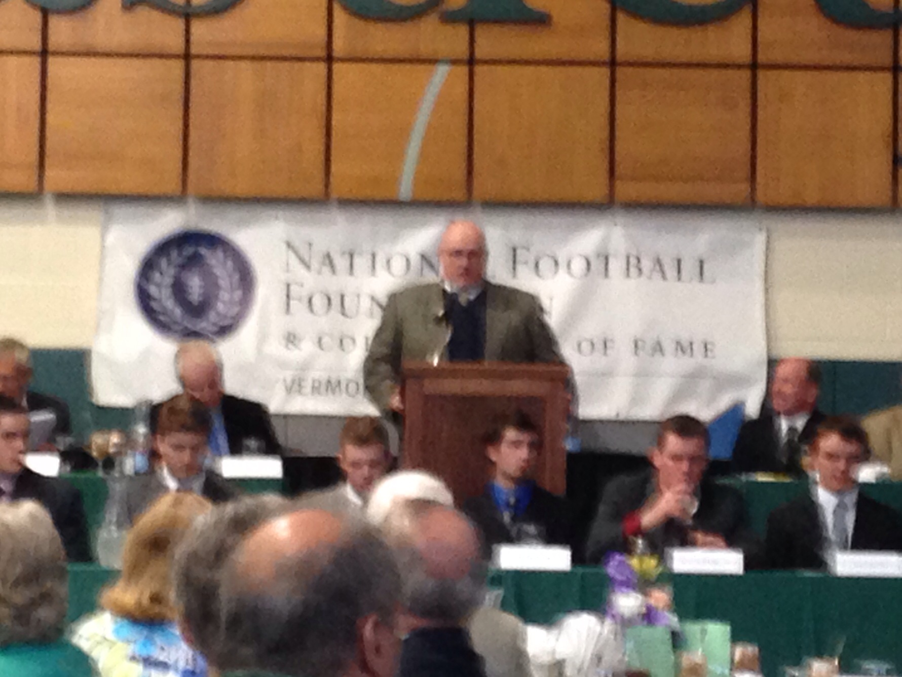 BFA Fairfax Football had a proud night at the 22nd annual National Football Foundation and College Hall of Fame banquet held at Castleton State College on Sunday, April 26. The annual banquet recognizes the top youth, high school and college players, coaches, and contributors in the state of Vermont. On the heels of a Division 3 State Championship season, the first in program history, Bullet Football took home four major awards issued over the course of the evening.