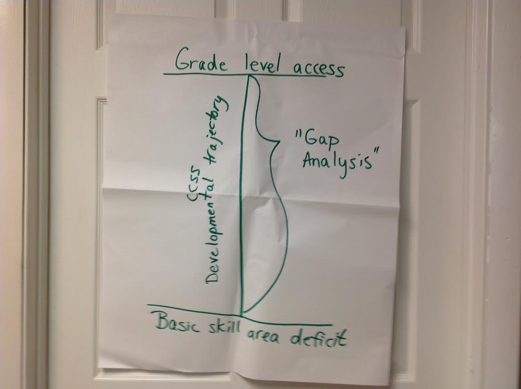 Gap analysis is the comparison of actual performance with potential or desired performance. It looks at how an organization does not make the best use of current resources. Instructor Jennifer Patenaude lead a lively discussion about the difference between grade level access and a deficit in a basic skill area. We continue to examine how the current model of special education services are provided in FWSU and across the State of Vermont.