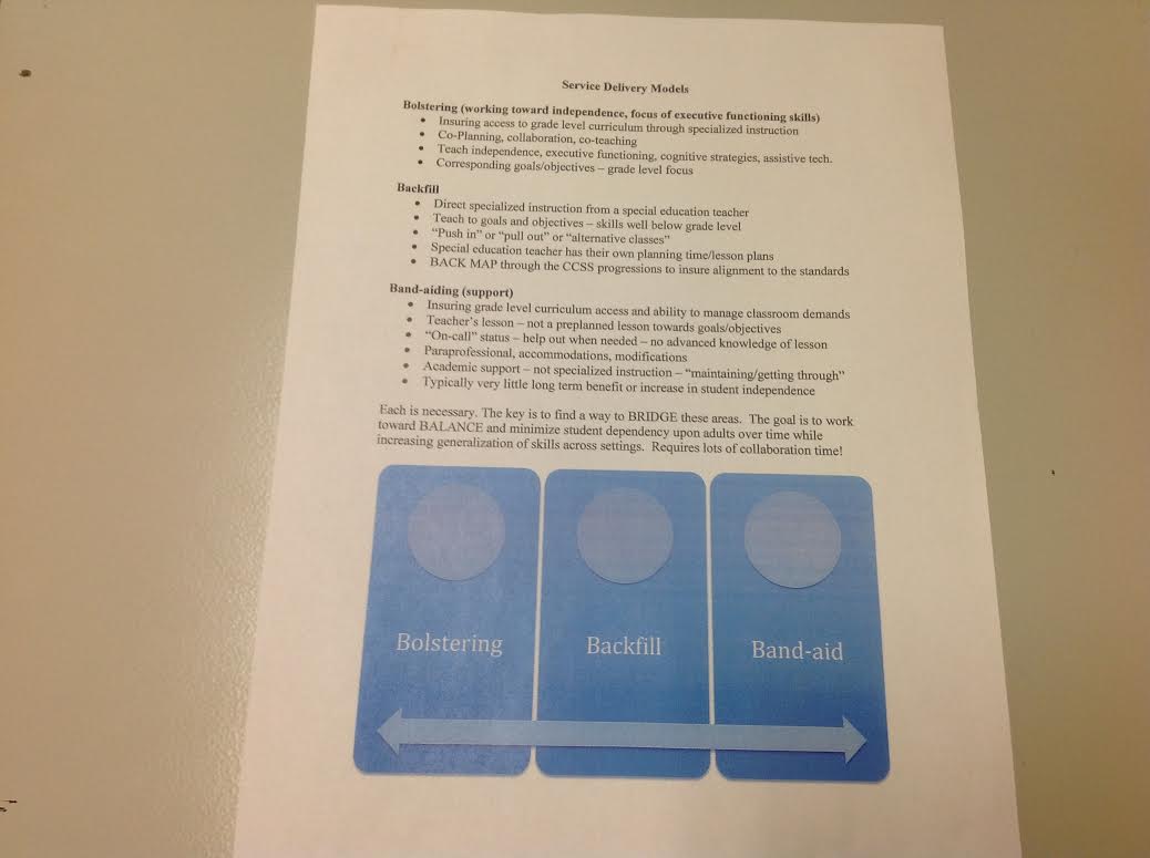 We continued to discuss the need to move towards “A comprehensive, systemic approach to teaching and learning designed to meet the academic and non-academic needs and improve learning for all students through increasingly differentiated and intensified assessment, instruction, and intervention, provided by qualified professionals with appropriate expertise.” Additional focus on the service delivery models continued with a “Bolstering, Backfill or Band-aiding” discussion.