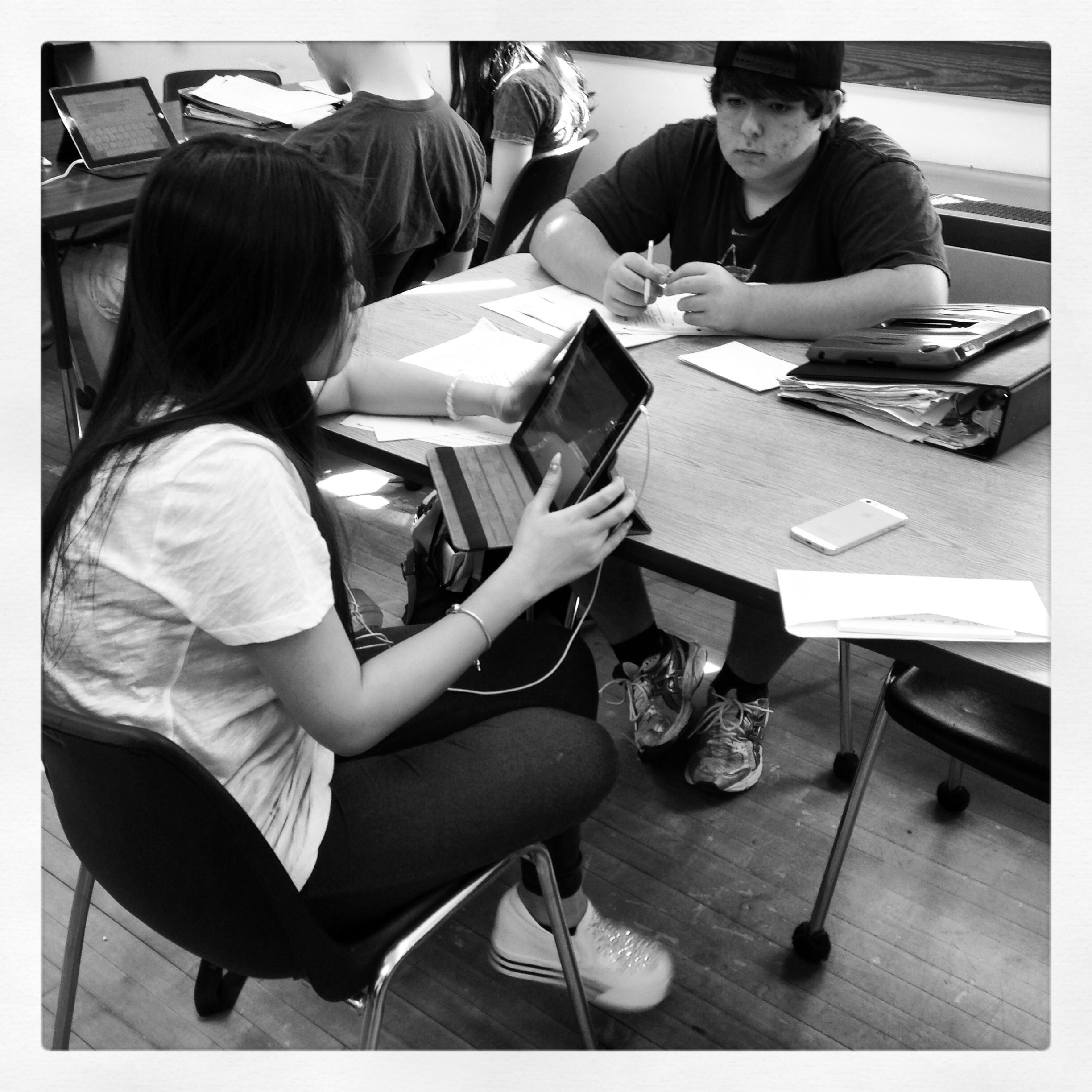 Flexible learning environments and digital tools allow for students to find spaces for learning throughout our school. Here, three students have found a comfortable spot in a hallway to work on assignments.