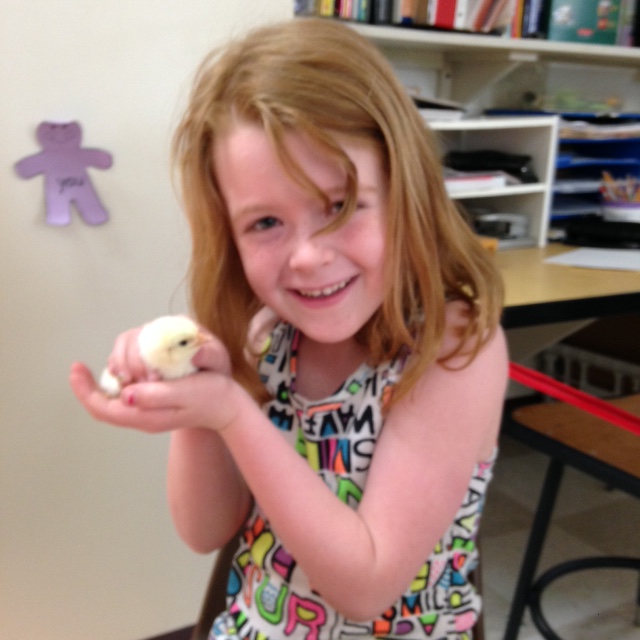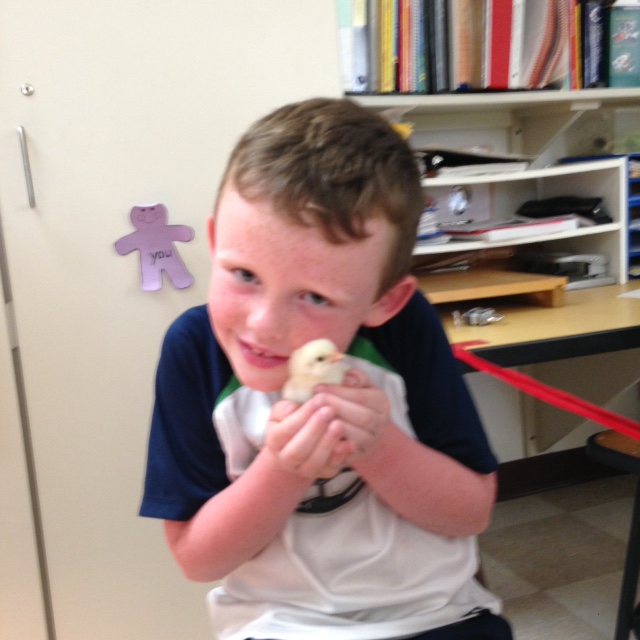 Because it is difficult to let 40 students all witness the hatching at once, teachers set up an iPad with Apple TV to project a hatch live. As the chick struggled exhaustively to free itself from the egg, students were held captivated by what they were witnessing. Once the chick broke free from its shell, cheers of joy and triumph erupted from the Kindergartners, Second Graders and from the adults in the room. Students wrote that it was the best experience of their life! Some even chose to write narratives about having chicks in the classroom!