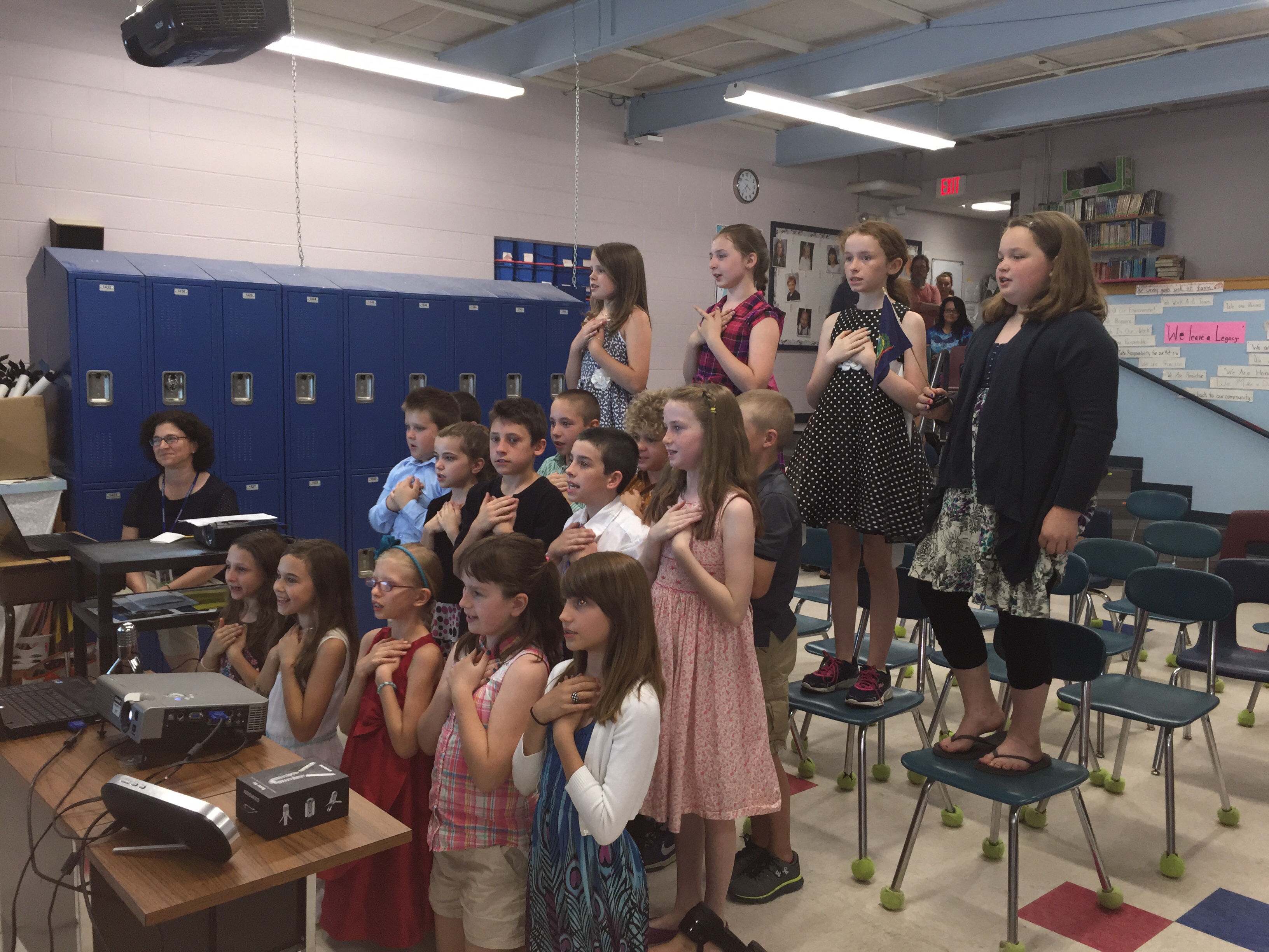 During the live class, families and friends were invited to share in the video conference call to Korea. Highlights of the program included students sharing details about famous people from Vermont. The students were also able to perform a beautiful performance of the Vermont State song for their international classmates.
