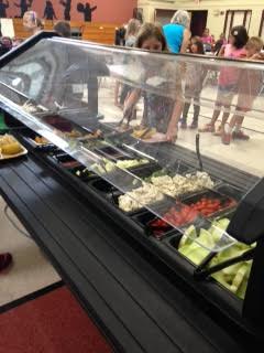 On any given day, standard options include a fresh salad bar stocked with many local ingredients, a hot meal ranging from items such as taco bar or General Tso’s chicken, the deli bar for assorted made-to-order wraps and sandwiches, fresh made pizza, burgers (chicken, beef, or black bean), and to top it off, fresh made cookies and frozen yogurt.