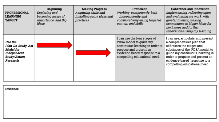 To accomplish their goals, participants in the Deeper Learning Institute create and implement a Personal Learning Plan and both develop and use Professional Learning Targets and Scales to help themselves deepen their own learning of 21st century pedagogy that also results in Deeper Learning competencies for students in the areas of content knowledge, transferable skills, and growth mindset. These competencies will help our students reach new understandings and growing levels of proficiency.