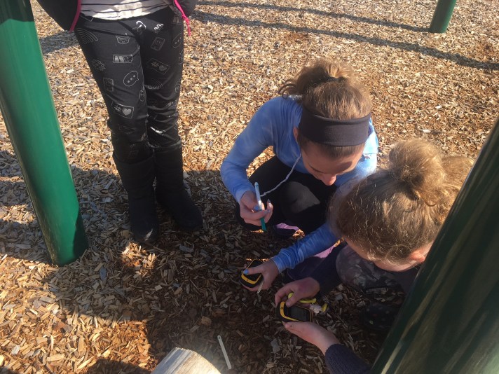 Next, the students took on the challenge of mystery caches. Unlike the traditional geocache, the posted coordinates are unknown. Geocachers must first solve a puzzle to get the correct coordinates. Once they have that figured it out, they have to input the data into the GPS and then try to find it like the traditional geocache. Students have had fun challenging themselves with coding and ciphers to find mystery caches.