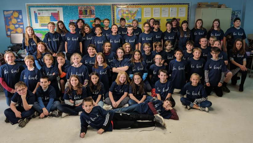 Through a generous grant, the entire fifth-grade teaching staff and students were presented with Be Kind t-shirts. These shirts will be worn by all of fifth-grade on the last Friday of each month. The last Friday of the month is also when the fifth-grade students are recognized for their many talents.