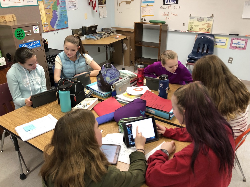 After their countries were established, students were presented with challenges and opportunities each day for the second week. At the start of each day, the entire grade met to discuss the previous day’s work and check the current standings. Each day, the students were given a global challenge, an individual situation, and an opportunity to work through. Global challenges were world wide problems that each country had to focus on. They included immigration, unemployment, trade, and medical discoveries. The groups had to decide the best solution based upon their research, their countries values and mission, and the constraints of the scenario.