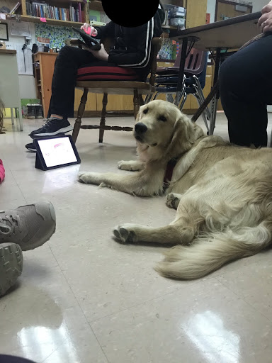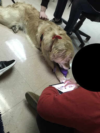 Every week, since returning from February vacation and ending just before April vacation, students in my learning environment have had the opportunity to practice reading a book about dogs with Fozzie. Our first week of Read to A Dog students had a lot of questions about Fozzie as they read the book Hero Therapy Dogs. By week two, each student was now practicing their own book about a dog to read. On week three, each student’s prosody (expressive reading) began to grow as they read their stories to Fozzie.