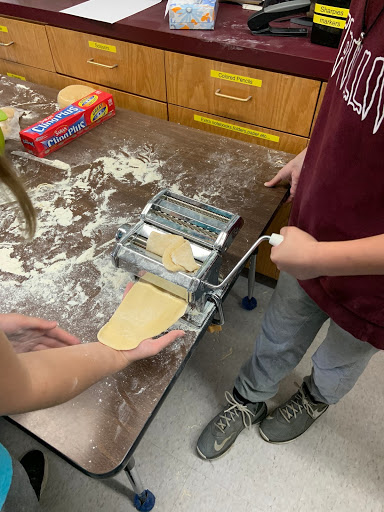 Earlier in the week students learned and participated in the process of making pasta. Homemade pasta is something everyone should make at least once in their lifetime. Our students engaged in the four part process of mixing and kneading the dough and then using a pasta cutter before placing the pasta on a drying rack.
