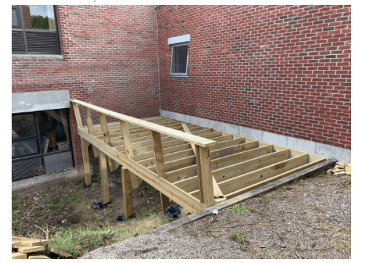 Tom and Caden worked with Facilities Manager, Tod Granger to check the feasibility of the plan and develop a cost estimate. We applied for a grant through the Berlin City Auto Group’s Drive for Education Program. In January 2020, we received a giant check from Berlin City to pay for the deck materials. We developed a plan to construct the deck in the Spring. It seemed like after years of unproductive starts, BFA would finally move forward with this project. Then the pandemic hit and school was dismissed for the rest of the school year.