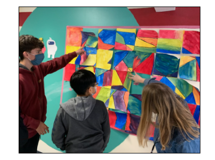 Our student’s curiosity and collective collaboration can be seen in many of our classrooms. A recent collaboration between our long-term substitute art teacher, Kait Jewett and math teacher, Mr. Coppenrath had students working to create collaborative art installation for our hallway blending the application of both their mathematical scale knowledge and artistic talents with a paint brush.