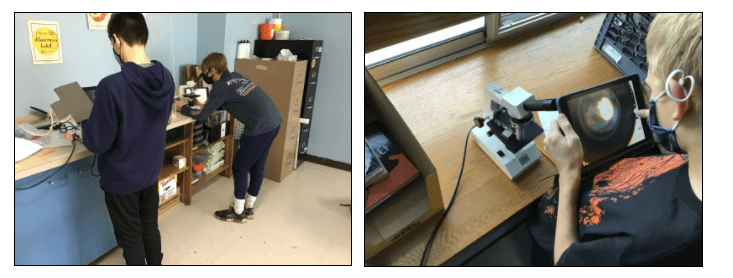 Some students explored this with physical microscopes, while others were exploring the same ideas virtually through an interactive app on their iPads. The room was buzzing with excitement and discovery of the microscopic world and students were able to share their images and learn with each other from a safe distance.