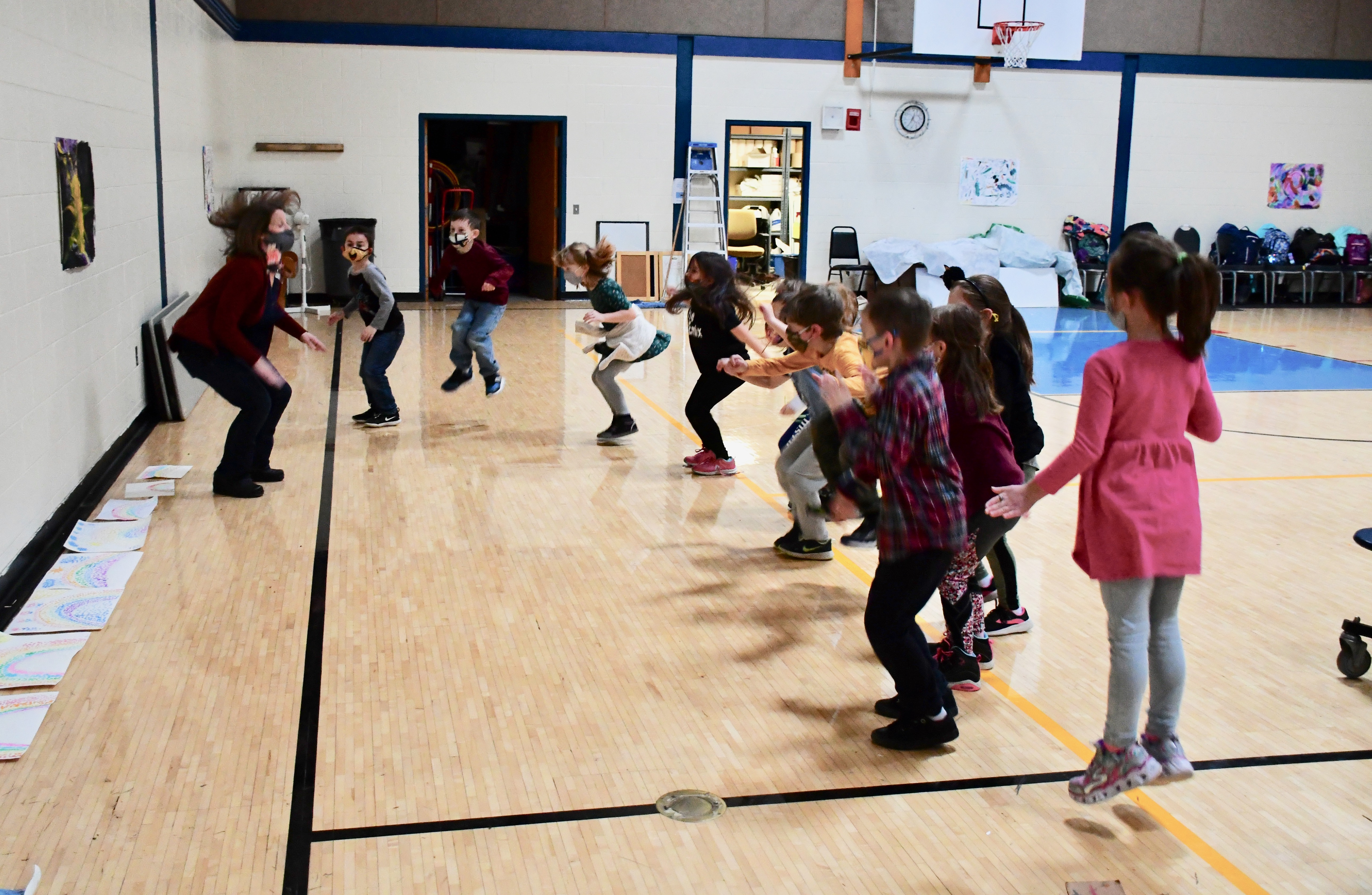 In music class, students identified all of the sounds they hear during a thunderstorm. Then, they brainstormed ways to create those sounds using only their bodies. This process is called body percussion, and it allows students to engage with music inside without singing due to the COVID pandemic.
