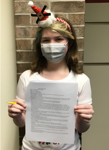 “I’ve definitely improved as a writer this year and I’m making a story about 4 kids who get trapped in a war in a different dimension and the only way out is if they win the war. The 4 kids names are Tommy, Sophie, William and Jacob and they live in an orphanage.”
