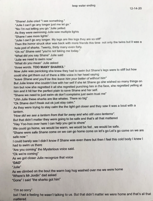 Here is a wonderful Deep Water ending from one of our 5th grade students: