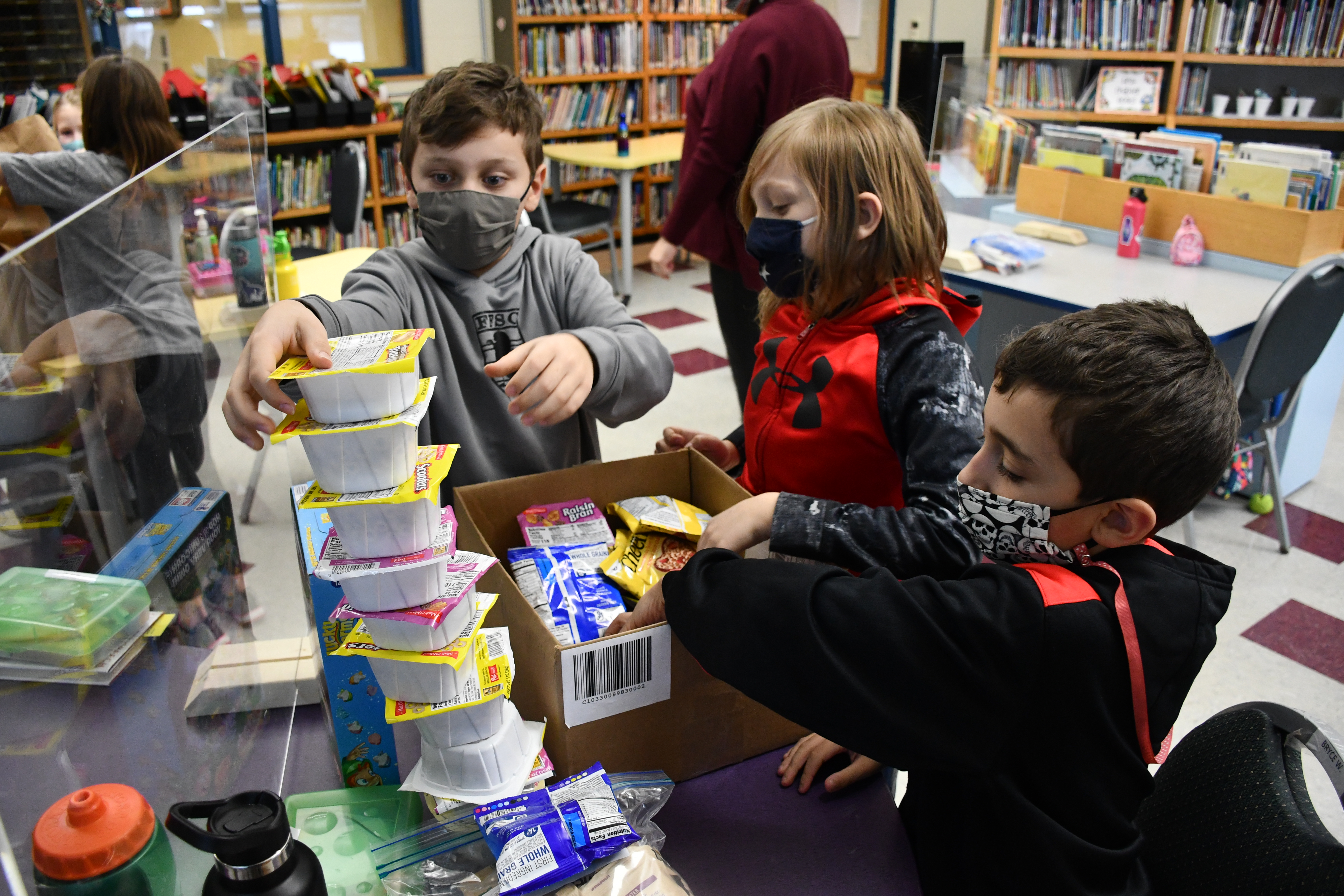 This is the first year that the school and parent group have organized the drive together with the goal of creating and distributing meal boxes to needy families within the town of Fletcher. Students discussed community service, and incorporated math skills into the drive by counting and sorting food items and graphing the totals each class contributed on a whole-school graph. The effort culminated in a virtual school-wide meeting during which students gathered the food for delivery.