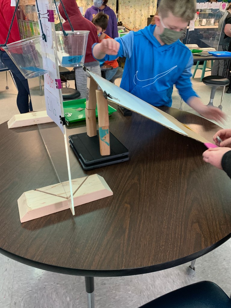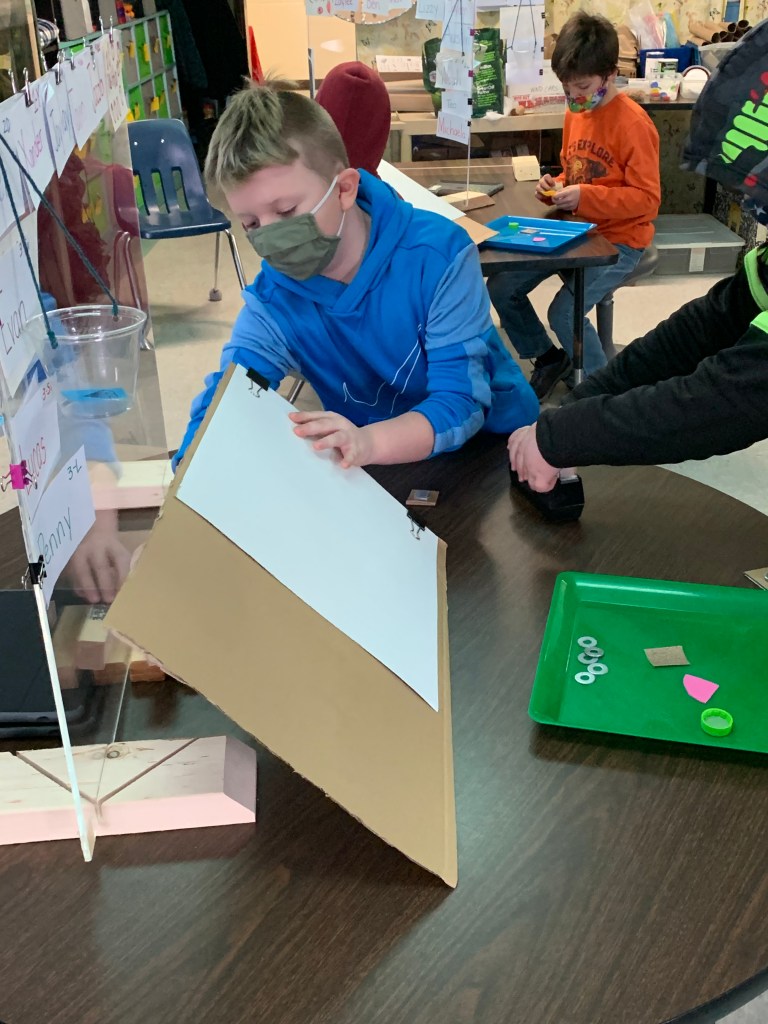 In the video linked below, students are discovering forces and interactions in the “light bulb lab”. As they create and implement their own tests they incorporate new learned vocabulary words, such as friction, gravity, incline and motion, into their discoveries and understanding.