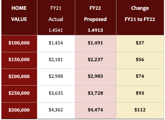 The tax rate is determined using the cost per pupil and the yield rate. The yield rate is set by the state and basically represents the value of an educational dollar at a consistent rate throughout the state. The greater the yield rate, the lower the tax rate. Throughout this year’s budget cycle, the rate changed several times, but, fortunately, always to a higher amount.