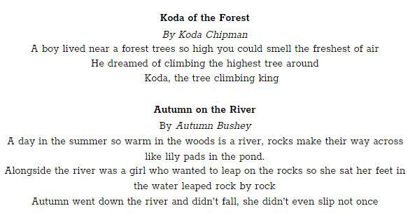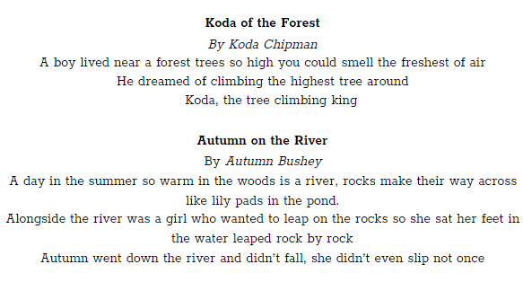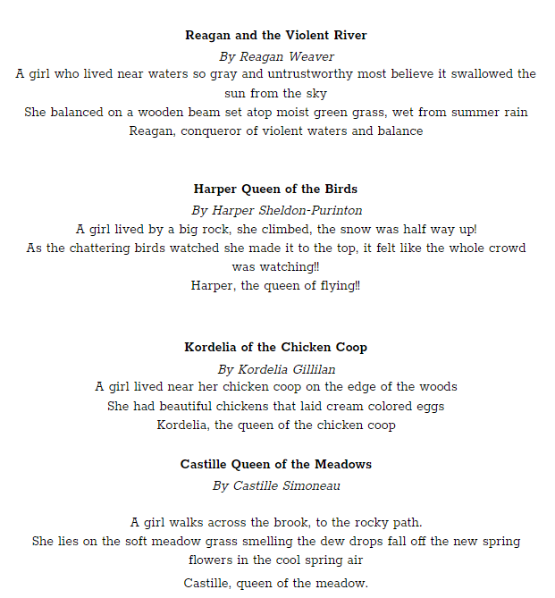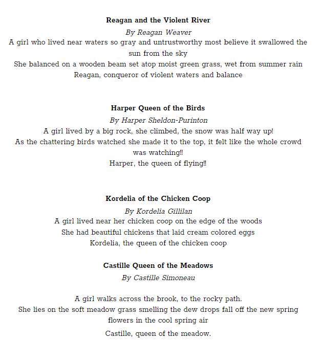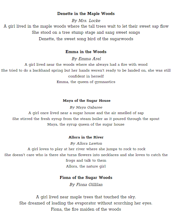 After listening to the story and engaging in some discussion, students followed steps to write a three line, free-form “place poem” with rich description (a key feature of the story). The purpose of the free-form poem was to tell a personal story of their own sense of place as well as a personal dream, as Amber does in the story.