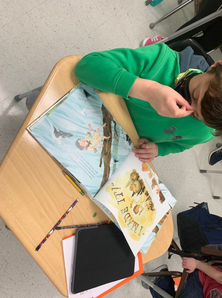 The course began with students learning about all of the key components of book reviews. Each day, Mrs. Rider read picture books aloud and students discussed the elements in the books. Although often thought of books for younger audiences, these older students were able to do a deep dive into the short stories and illustrations, gaining insight for each of the books’ themes, messages, and audiences.