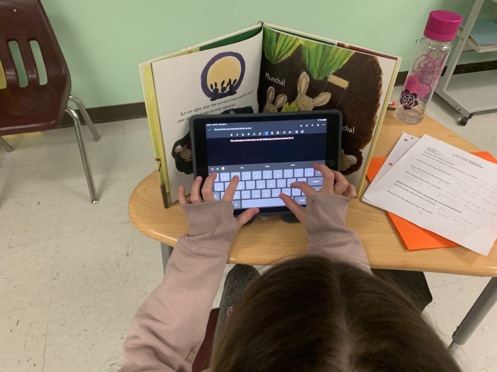Next, the students were individually assigned a picture book, and were challenged to write a book review using all the skills they had recently learned. Once written, students were then paired with a student assigned the same book, to compare and contrast reviews with each other. Finally, these student pairs collaborated together using Google Docs on iPads to write a final cohesive review.