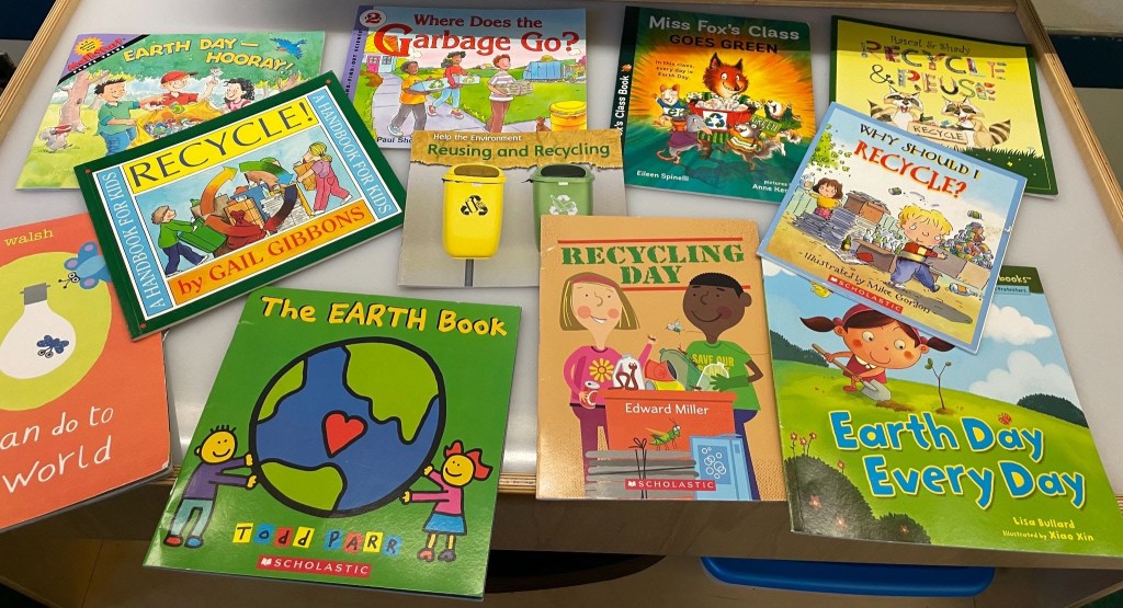 Mrs Hurt read students a wide variety of books about recycling.